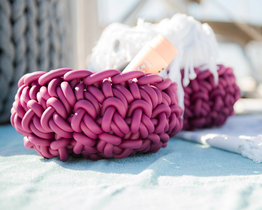 Handgemaakte gehaakte mand met dik neopreen garen, ontworpen voor duurzaamheid en dagelijks gebruik.