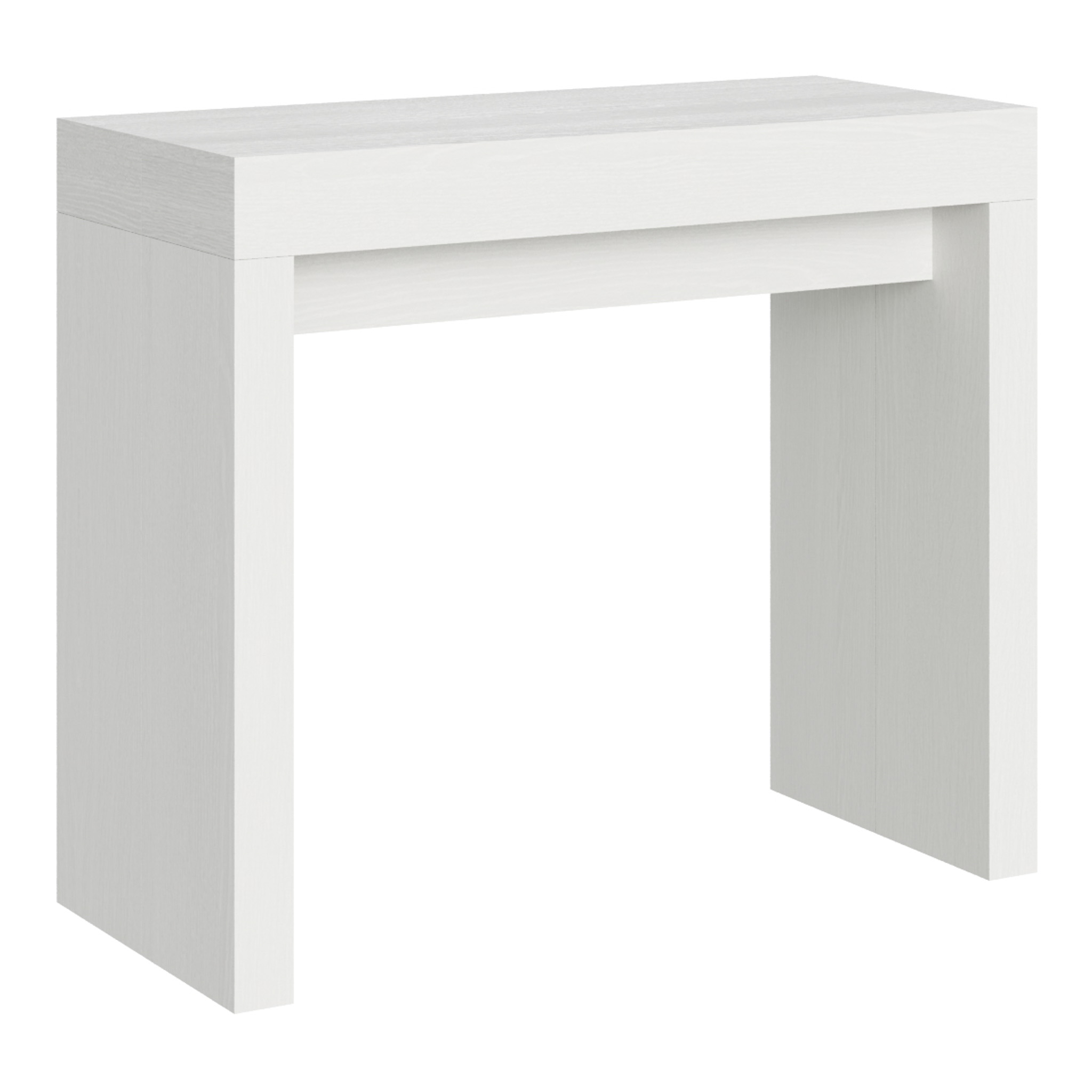De Roxell uitschuifbare consoletafel is veelzijdig en robuust, waardoor hij perfect past in elke ruimte: hal, keuken, eetkamer, woonkamer of gang. De Roxell uitschuifbare consoletafel kan eenvoudig worden omgetoverd tot een grote eettafel van maximaal 300 cm lang, met plaats voor maximaal 14 personen. Het uitschuifsysteem is gemaakt van panelen met een melamine coating en is voorzien van telescopische aluminium geleiders en een centrale steun, waardoor de consoletafel stabiel en stevig is. Wanneer de consoletafel is ingeklapt, moeten de verlengstukken worden opgeborgen. Product van Itamoby, Made in Italy. Afmetingen: Gesloten consoletafel: B 90 D 40 H 77 cm. Lengte met 1 verlengstuk: 92 cm. Lengte met 2 verlengstukken: 144 cm. Lengte met 3 verlengstukken: 196 cm. Lengte met 4 verlengstukken: 248 cm. Lengte met 5 verlengstukken: 300 cm.