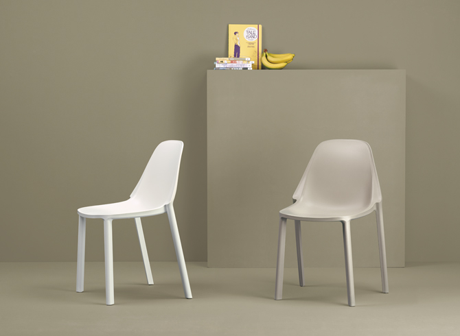 Recyclebaar frame van technopolymeer. Versterkt met glasvezel. Gemaakt met behulp van luchtgiettechnologie. Geschikt voor binnen- en buitengebruik. Stapelbaar. Sedia Più is ontworpen voor grootschalig gebruik in projectinrichting, dankzij de nieuwe pallet van 24 stuks die gemakkelijk met een heftruck te verplaatsen en op te bergen is.