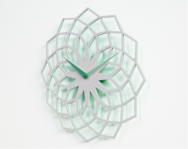 Geschilderde metalen wandklok. Werkt op batterijen en heeft een quartz uurwerk.