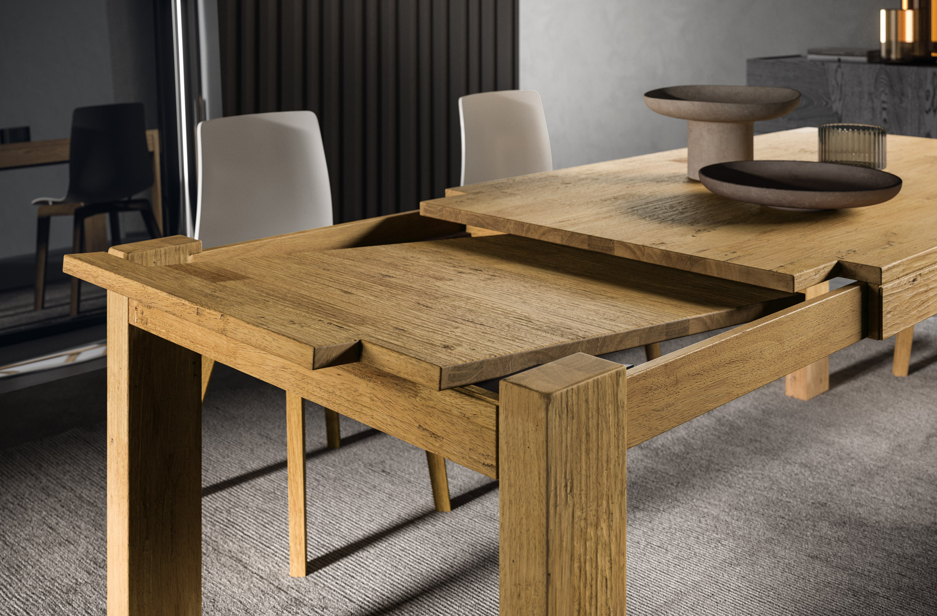 Een van de meest innovatieve kenmerken van de MOOD-tafel is het geïntegreerde verlengsysteem. Indien nodig kunt u de tafel verlengen met behulp van een handig verlengstuk dat in het frame is verborgen. Dit vergroot de afstand tussen de poten en biedt extra ruimte om comfortabel plaats te bieden aan vrienden en familie. Functionaliteit en praktisch nut komen samen in een elegante en discrete oplossing.