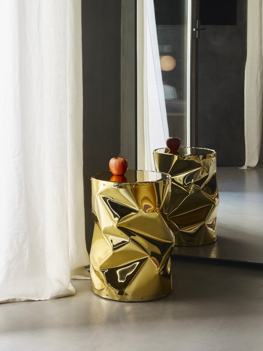 Tab.u, van Opinion Ciatti, is een aluminium kruk ontworpen door Bruno Rainaldi en kenmerkt zich door zijn gekreukte ontwerp, een werkelijk cool object.