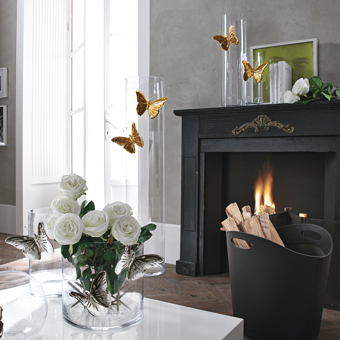 Een vlinder van platina of goudkleurig keramiek
