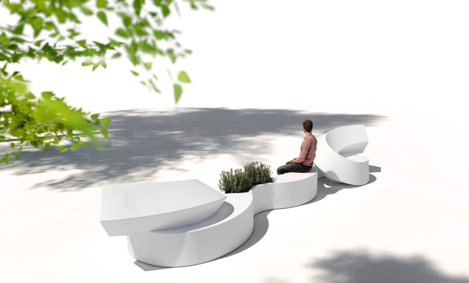 De combinatie van gebogen en gebroken vormen creëert een elegant en ritmisch visueel pad, perfect geschikt voor openbare ruimtes zoals pleinen, tuinen of hedendaagse stedelijke omgevingen. De toevoeging van groen versterkt het natuurlijke karakter van het project en transformeert de Twist-cassette tot een functioneel meubelsysteem.