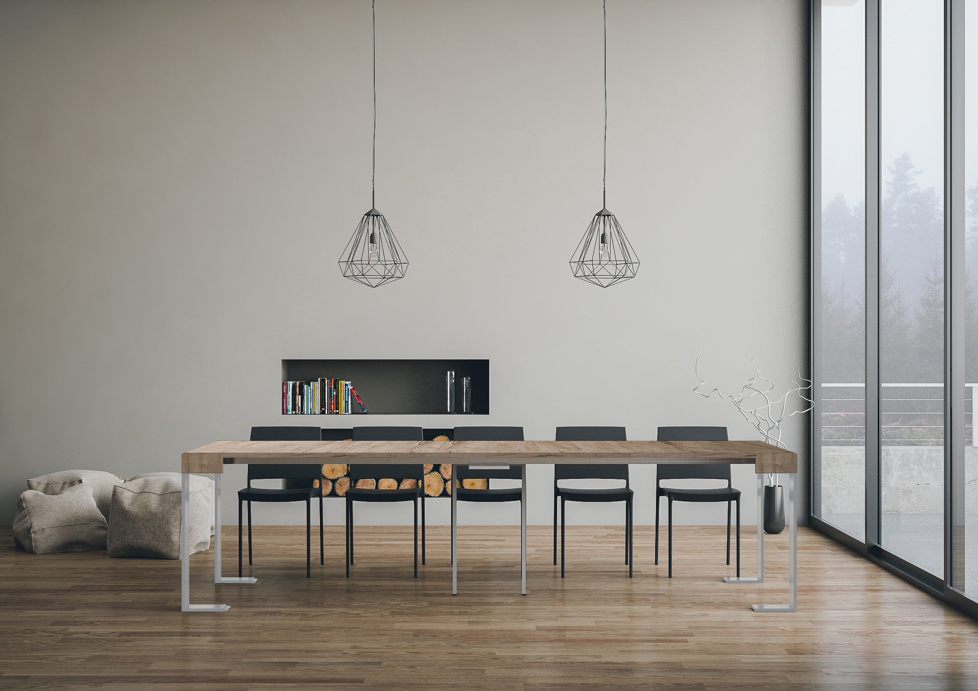 De Tecno uitschuifbare consoletafel is veelzijdig en robuust, waardoor hij perfect past in elke ruimte: hal, keuken, eetkamer, woonkamer of gang. De Tecno uitschuifbare consoletafel kan eenvoudig worden omgetoverd tot een grote eettafel van maximaal 300 cm lang, met plaats voor 14 personen. Gemaakt van melamine panelen en ijzeren poten. Het uitschuifsysteem met telescopische aluminium geleiders en de meegeleverde centrale steun zorgen voor stabiliteit en stevigheid. Wanneer de consoletafel is ingeklapt, moeten de verlengstukken worden opgeborgen. Itamoby product, Made in Italy. Afmetingen: Gesloten consoletafel: B 90 D 40 H 77 cm. Lengte met 1 verlengstuk: 92 cm. Lengte met 2 verlengstukken: 144 cm. Lengte met 3 verlengstukken: 196 cm. Lengte met 4 verlengstukken: 248 cm. Lengte met 5 verlengstukken: 300 cm.