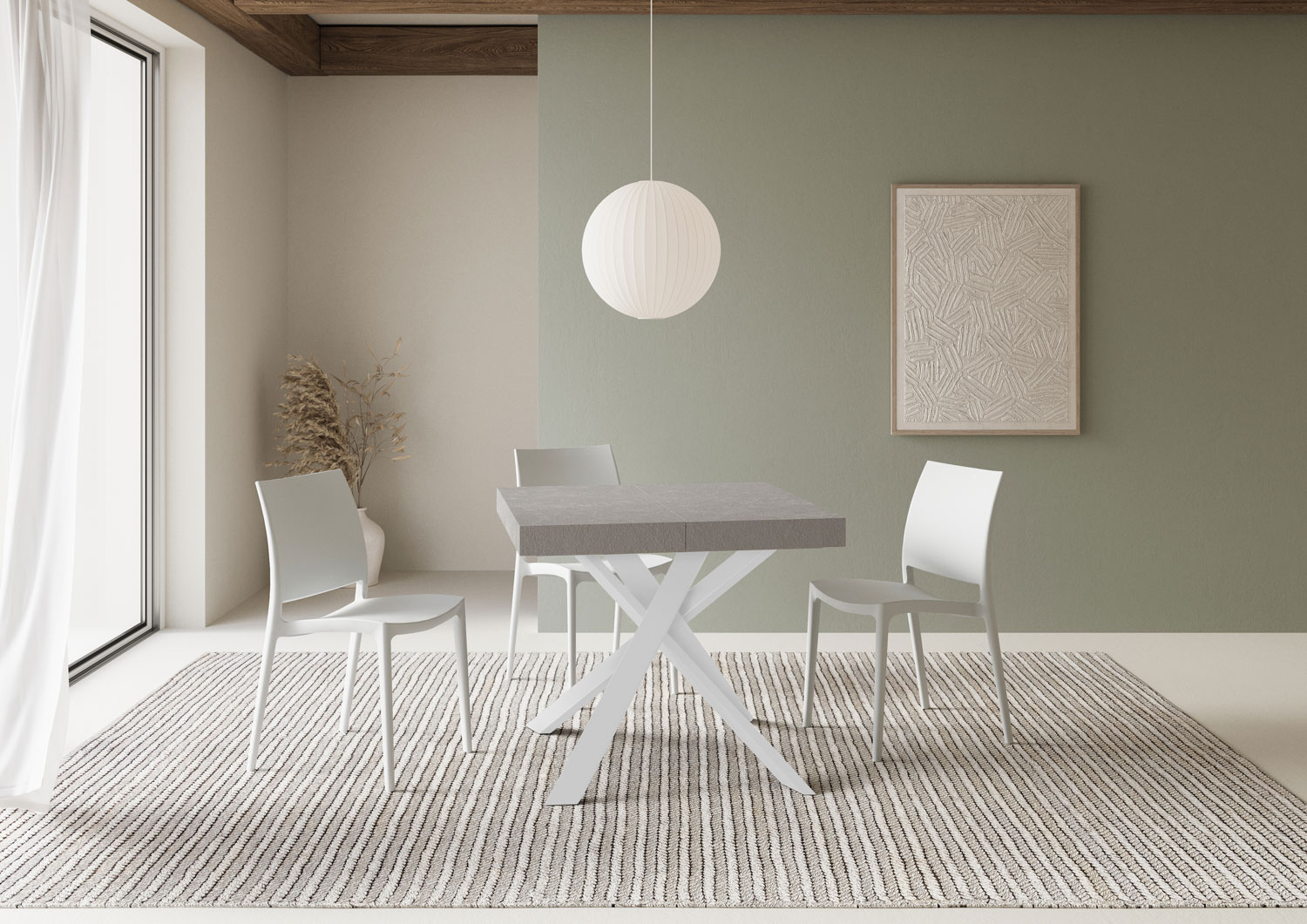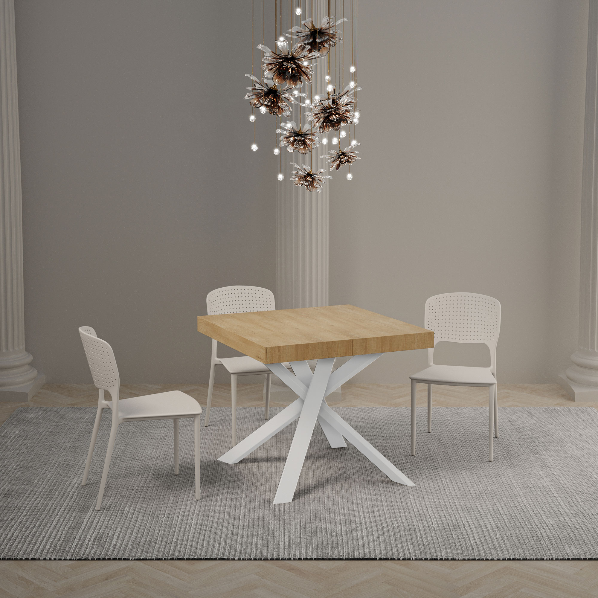 | Afmetingen | L.90 D.90 H.76 cm (uitschuifbaar tot 194 cm) |