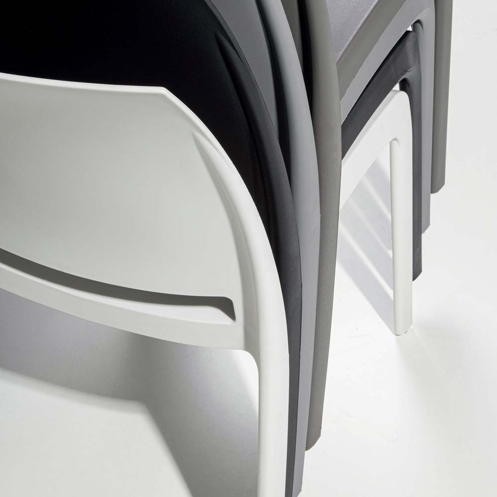 Het is volledig gemaakt van hoogwaardig polypropyleen en verkrijgbaar in acht heldere en moderne kleuren: grijs, duifgrijs, zwart, wit, baksteenrood, mosterdgeel, bosgroen en luchtmachtblauw.
