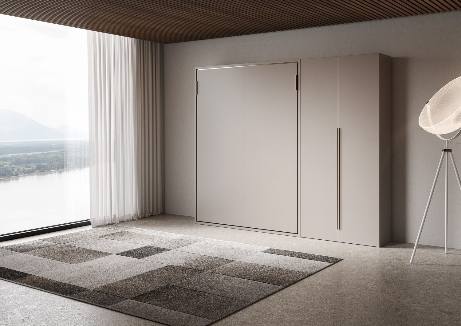 | Materiaal | Het Versia tweepersoons opklapbed met een kledingkast met twee deuren geeft een nieuwe invulling aan het concept ruimte. Elegantie, functionaliteit en design komen samen in Versia, het tweepersoons opklapbed dat elke kamer transformeert in een oase van co |