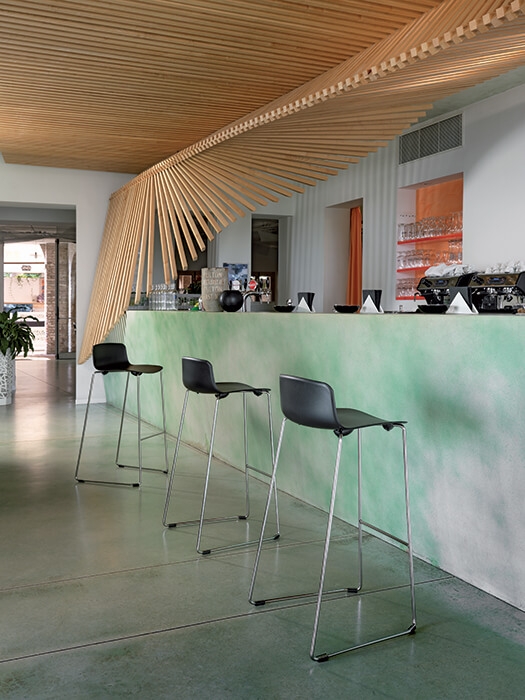De VESPER 3 kruk completeert de Vesper-familie. Hij heeft dezelfde zitting, maar dan met een kortere rugleuning.