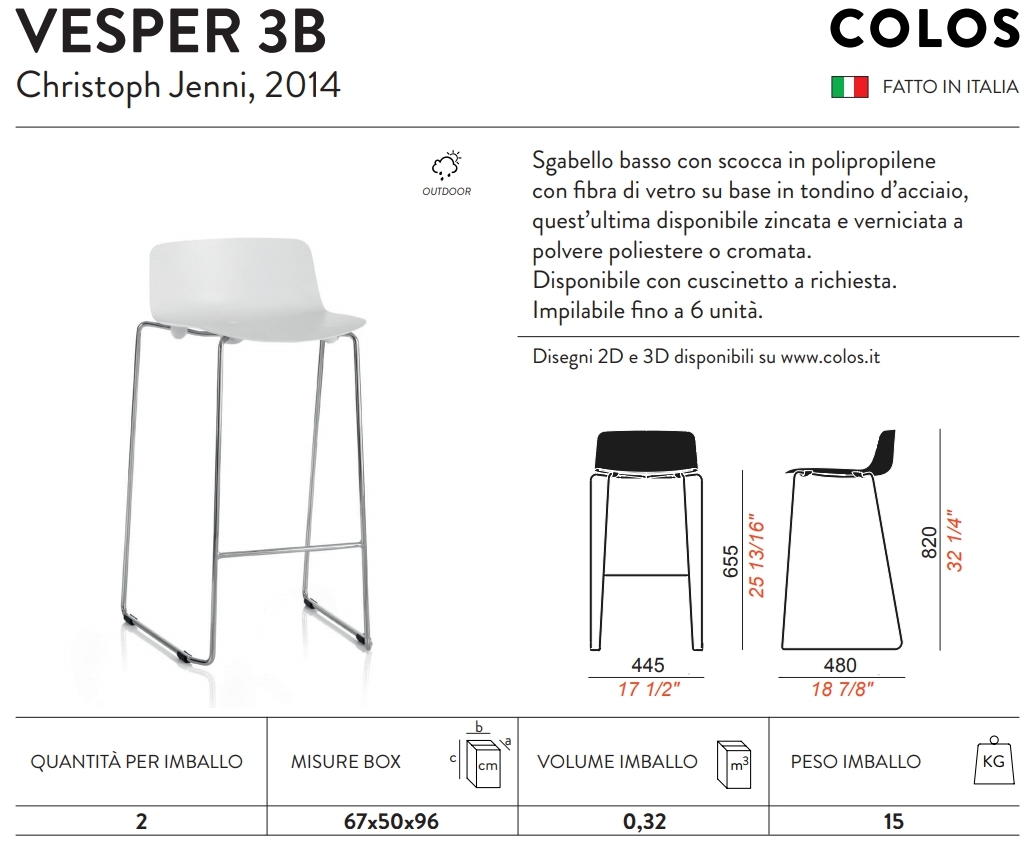 VESPER is een productlijn bestaande uit stoelen, fauteuils en krukken, waarvan de zittingen zijn gemaakt van glasvezelversterkt polypropyleen en het frame van metaal.