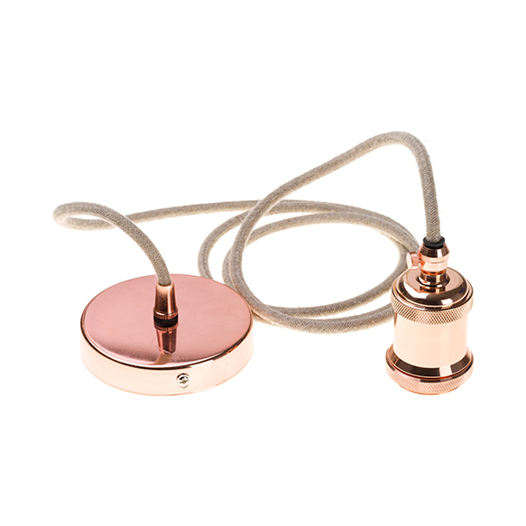 Materiaal: Koper, textielkabel met aarding tussen de rozet en de lamphouder.
