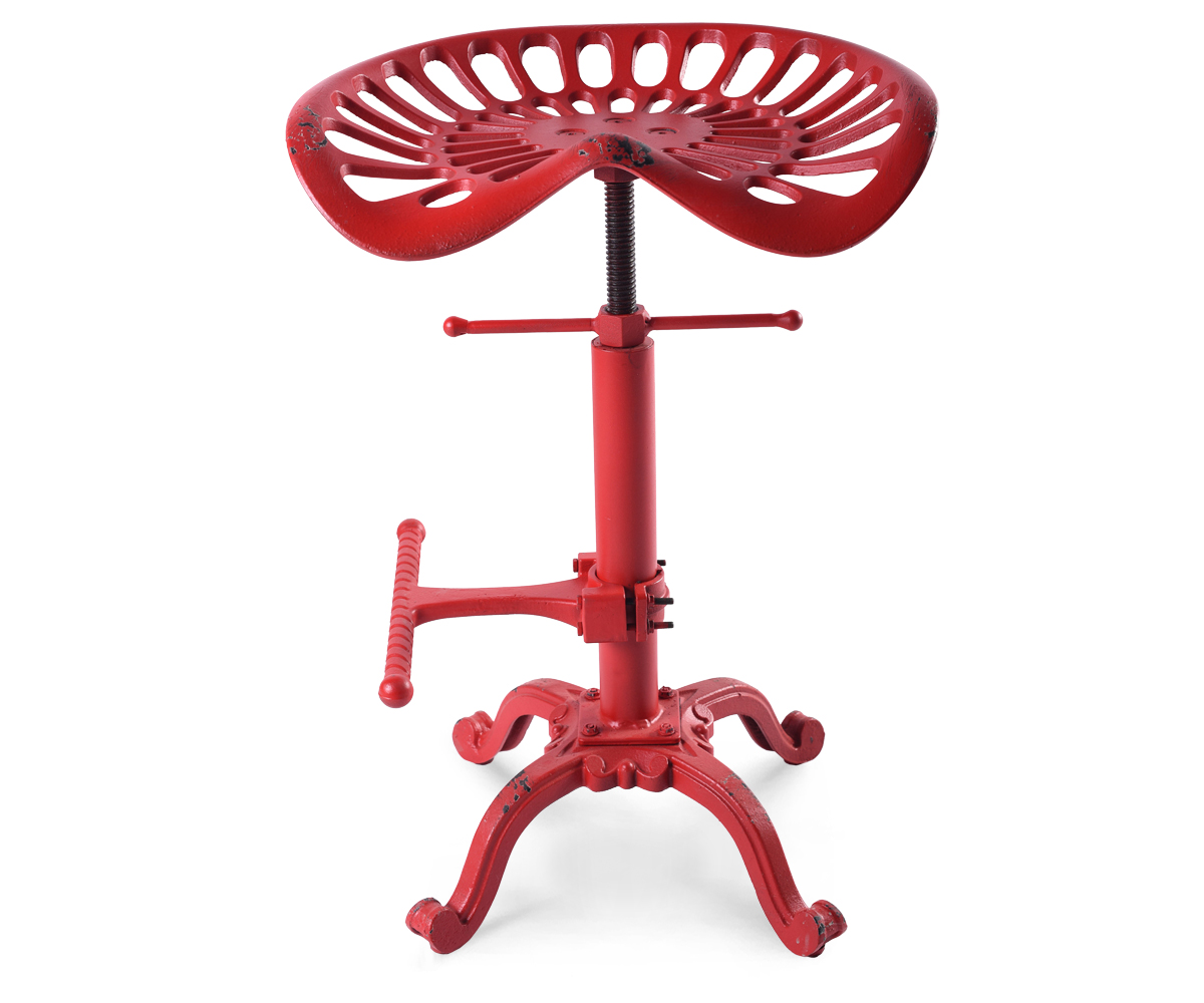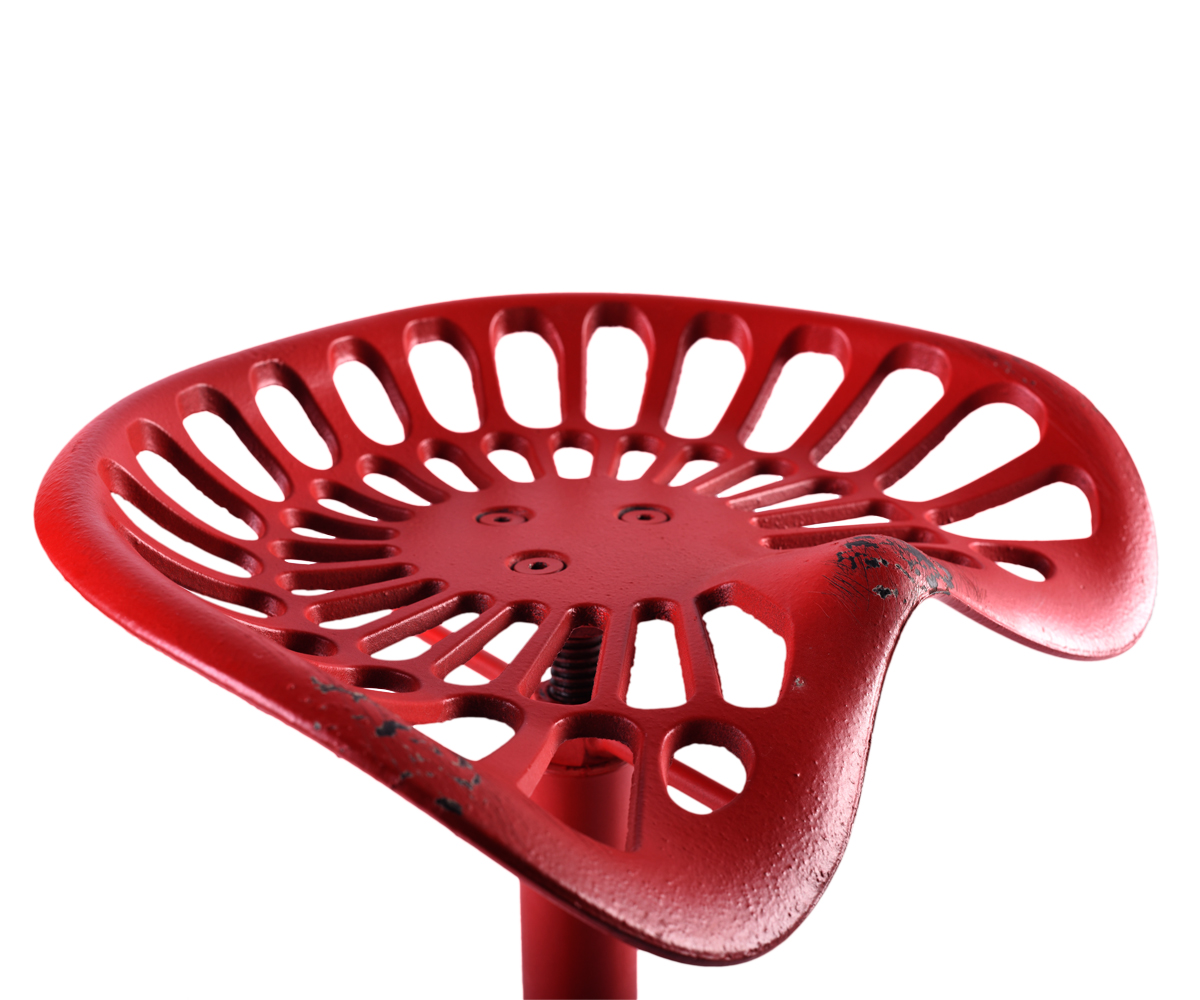 In hoogte verstelbare hoge kruk in vintage industriële stijl. Gelakt gietijzeren frame.