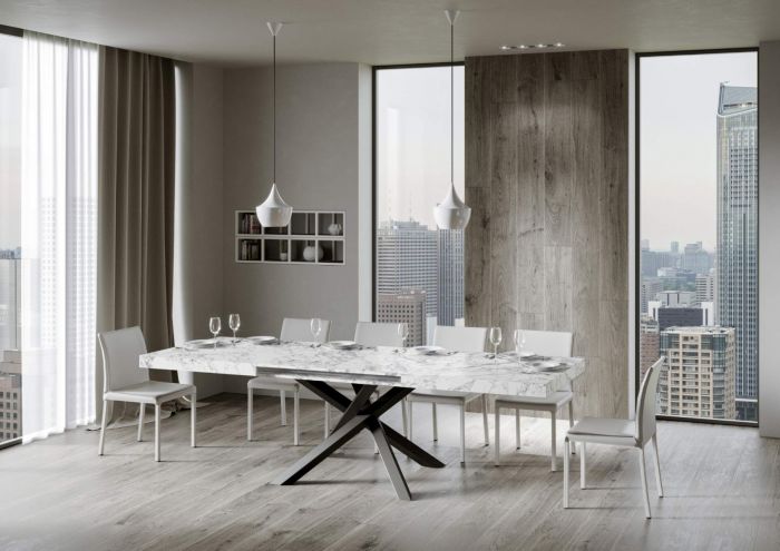 Een trapsgewijs uitschuifbare tafel. Met twee verlengstukken van 52 cm biedt de tafel diverse mogelijkheden tot een lengte van 264 cm.