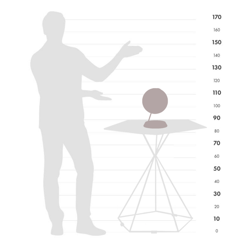 De eigentijdse kaart is het bepalende element van dit tafelmodel: elegante blauwtinten , variërend van luchtmachtblauw tot stoffig blauw, contrasteren met de prachtige ijzige aardetinten. De bol wordt ondersteund door een slanke stalen stang met een moderne en innovatieve uitstraling. Tot slot herbergt de walnotenhouten voet de ware innovatie van het Bridge-model: ingebouwd draadloos opladen.