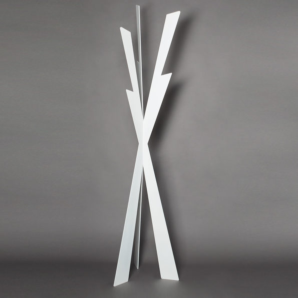 De Zeus 2954 kapstok van Arti e Mestieri is een waar functioneel kunstwerk: een wandkapstok met een scenografisch ontwerp, volledig vervaardigd uit lasergesneden en geverfd ijzer .
