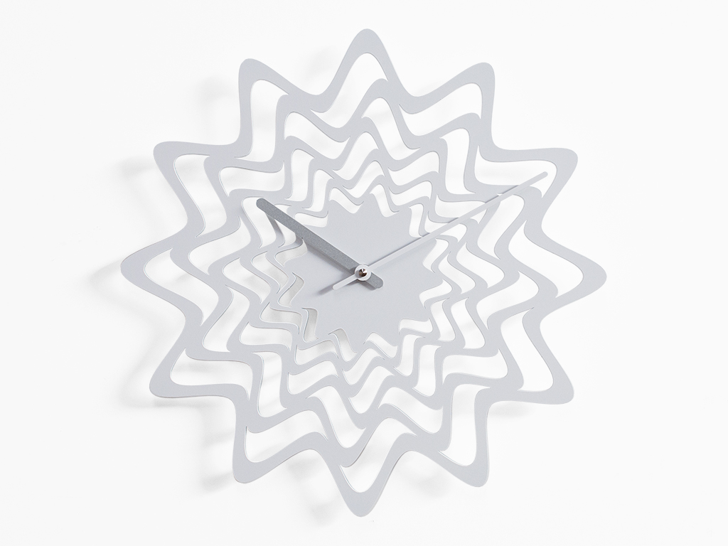 Orologio da parete in metallo verniciato. Movimento al quarzo a batteria.