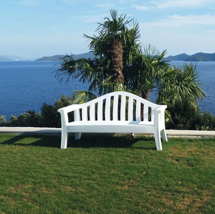Giulietta è una panca di Paolo Rizzatto per Serralunga, realizzato in polietilene. Protezione UV, 100% riciclabile, resistenza agli urti.