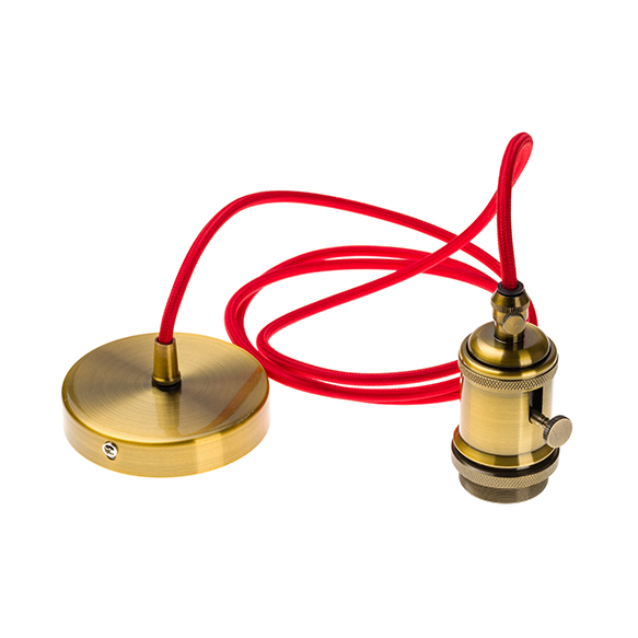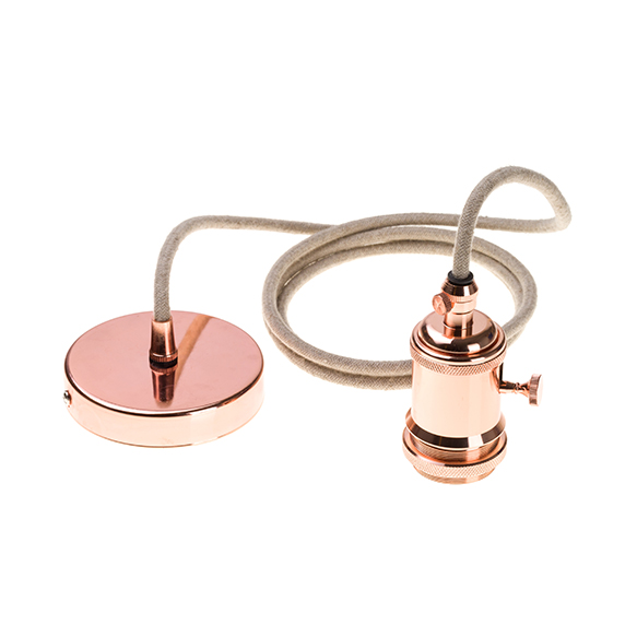 Materiale in Rame Metallo, cavo tessile con messa a terra tra rosone e portalampada.