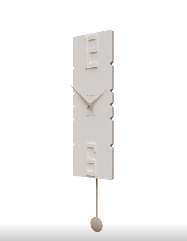 Realizzato artigianalmente in Italia, monta un meccanismo tedesco con pendolo al quarzo. Disponibile in vari colori, è perfetto ad esempio nel soggiorno living, cucina o studio.