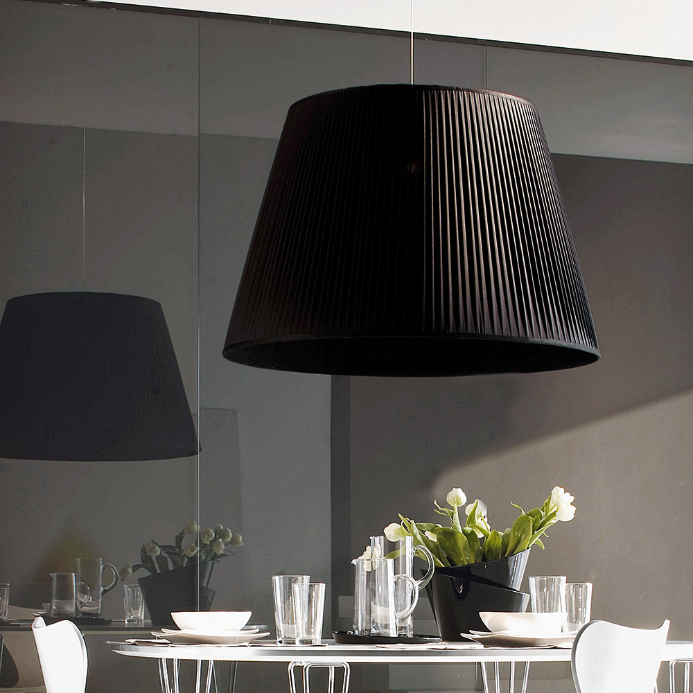 Lampa stożkowa z plisowanej tkaniny.