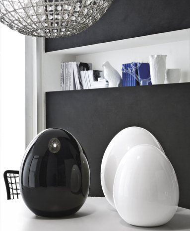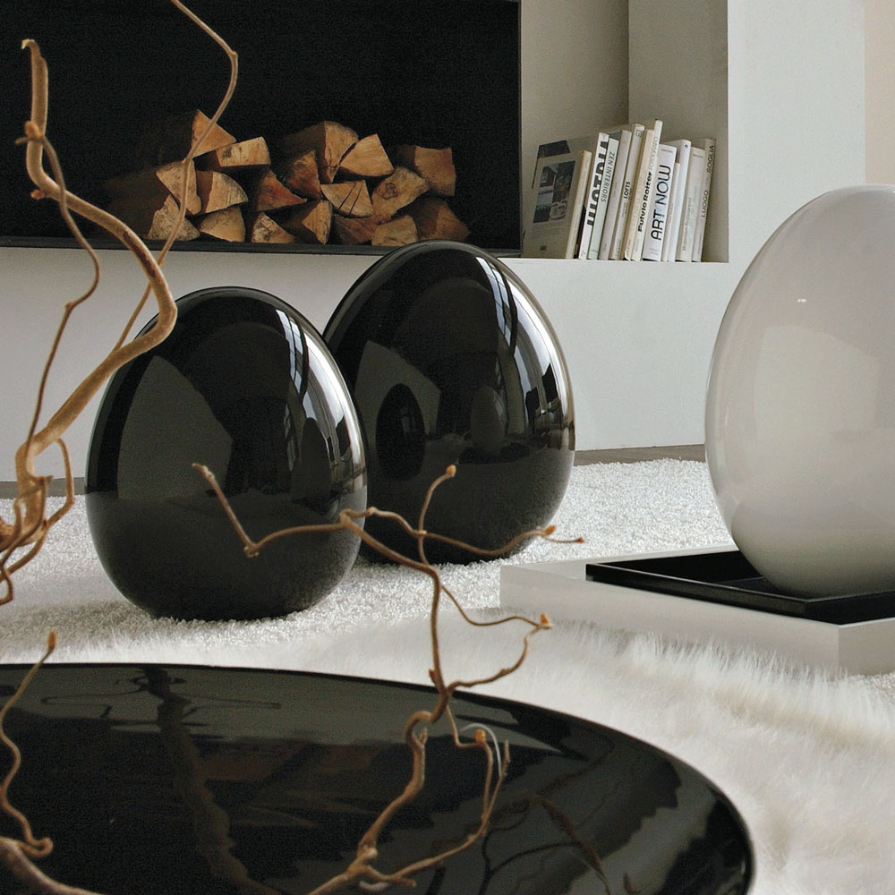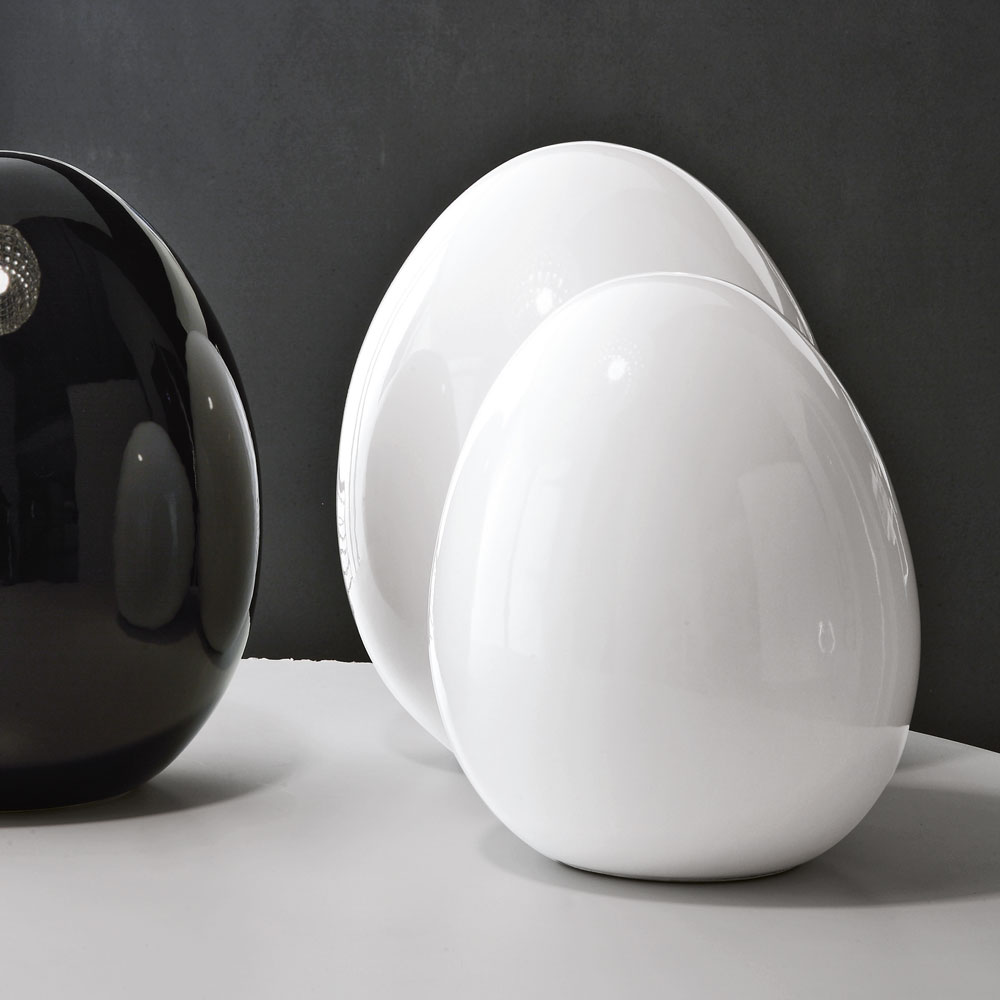 Rzeźba z błyszczącej, szkliwionej ceramiki.