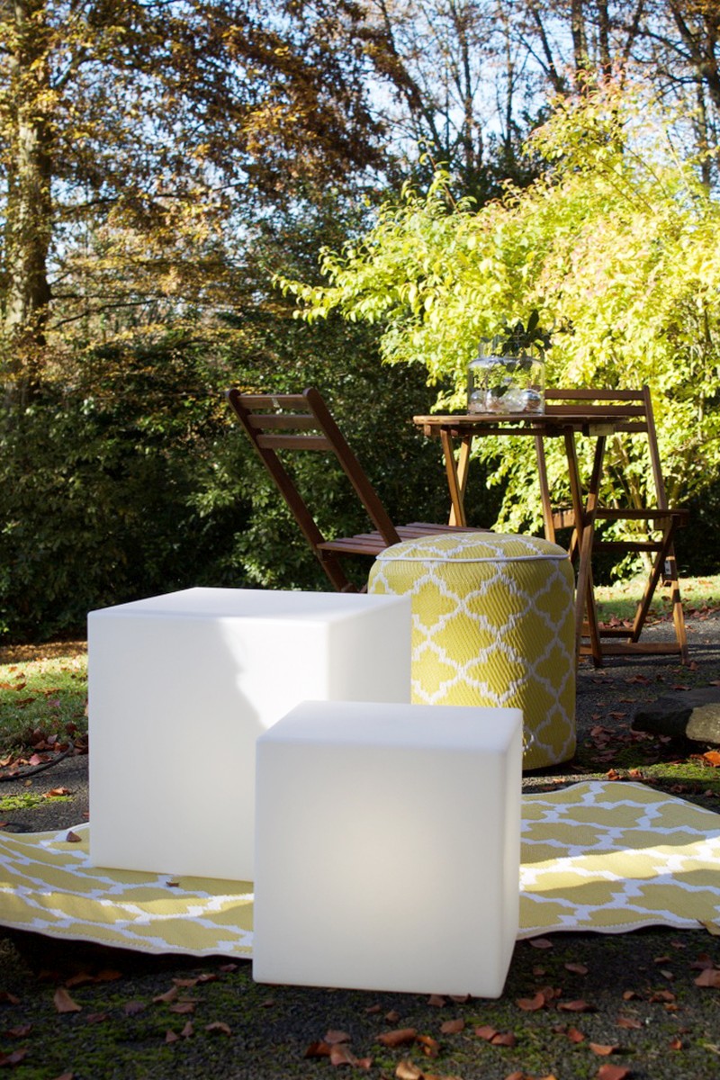 Shining Cube wyróżnia się prostym, liniowym i eleganckim kształtem, dzięki czemu idealnie pasuje do każdej przestrzeni wewnętrznej i zewnętrznej. Sam zdecyduj, czy chcesz go używać jako siedziska, stolika nocnego, oświetlenia półki, czy w połączeniu różnych kształtów i kolorów. Niezależnie od wyboru, dzięki wysokiej jakości wykonania i ponadczasowemu wzornictwu, ta lampa zawsze zrobi wrażenie!