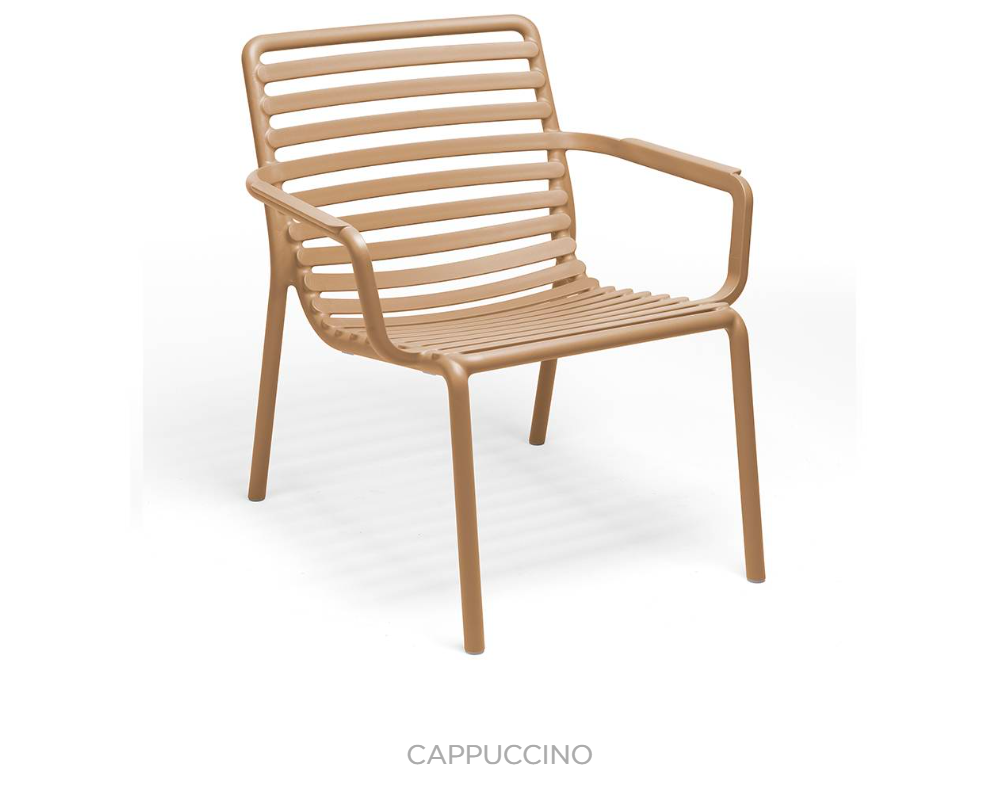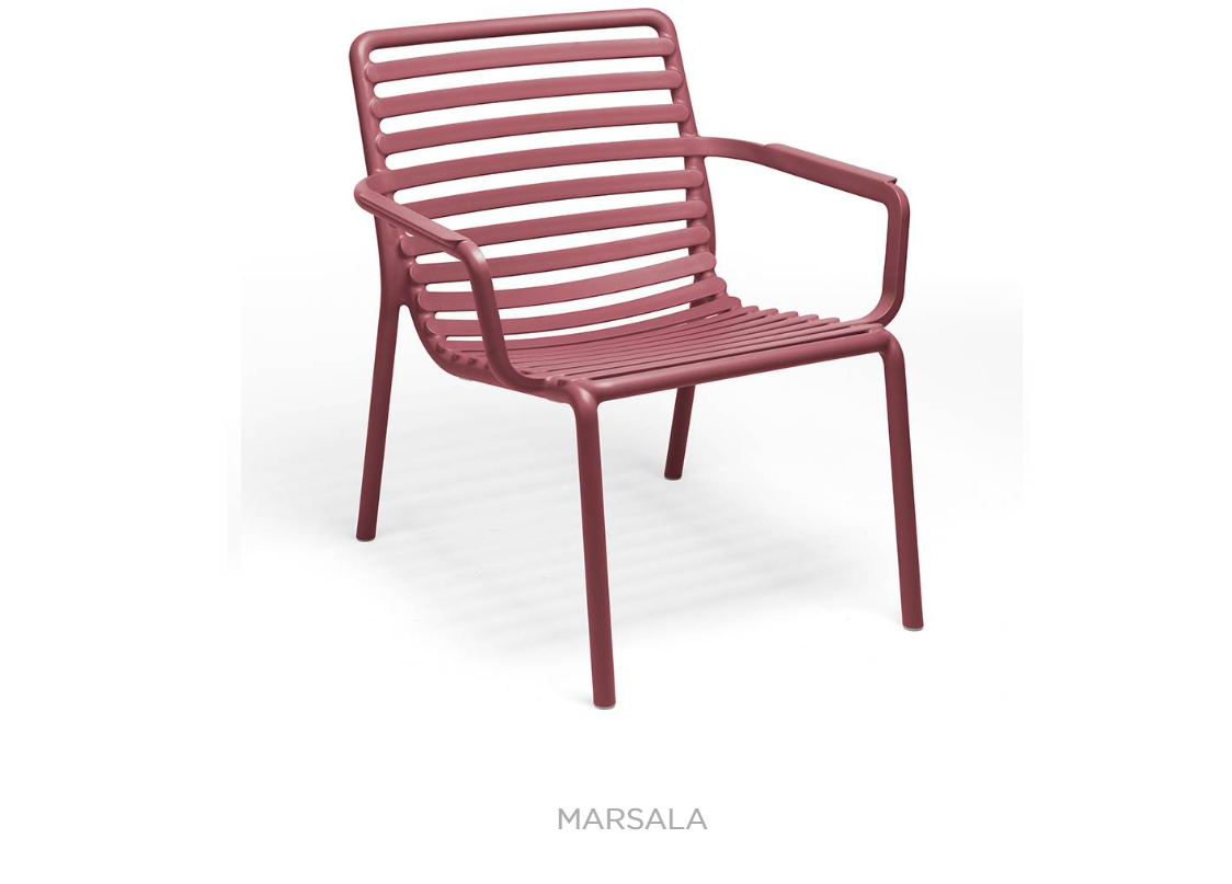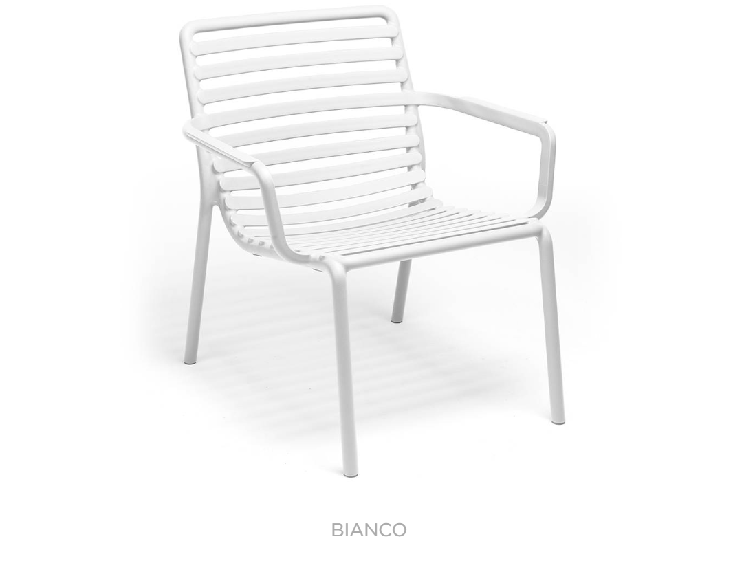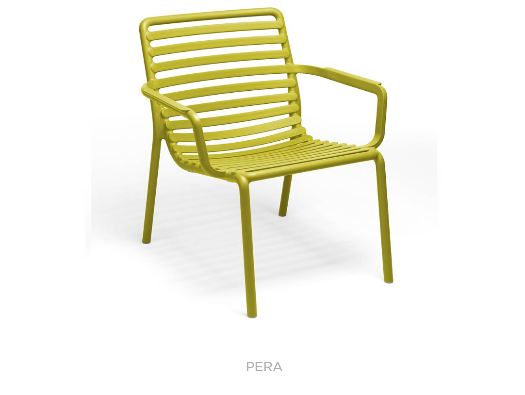 Poltrona monoblocco. Materiale: polipropilene fiberglass trattato anti-UV e colorato in massa. Impilabile. Finitura opaca. Dotata di piedini antiscivolo. Cuscino disponibile su ordinazione. Resina riciclabile.