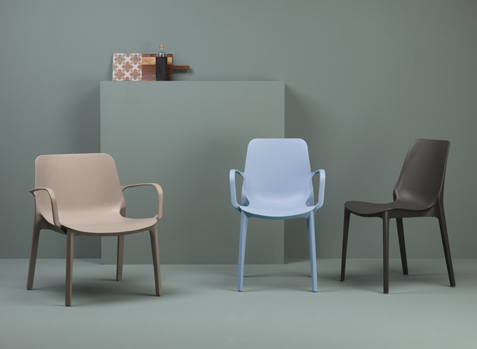 Disponibile in tonalità sorprendenti come lino, tortora e antracite, che esaltano le linee sinuose del tecnopolimero.