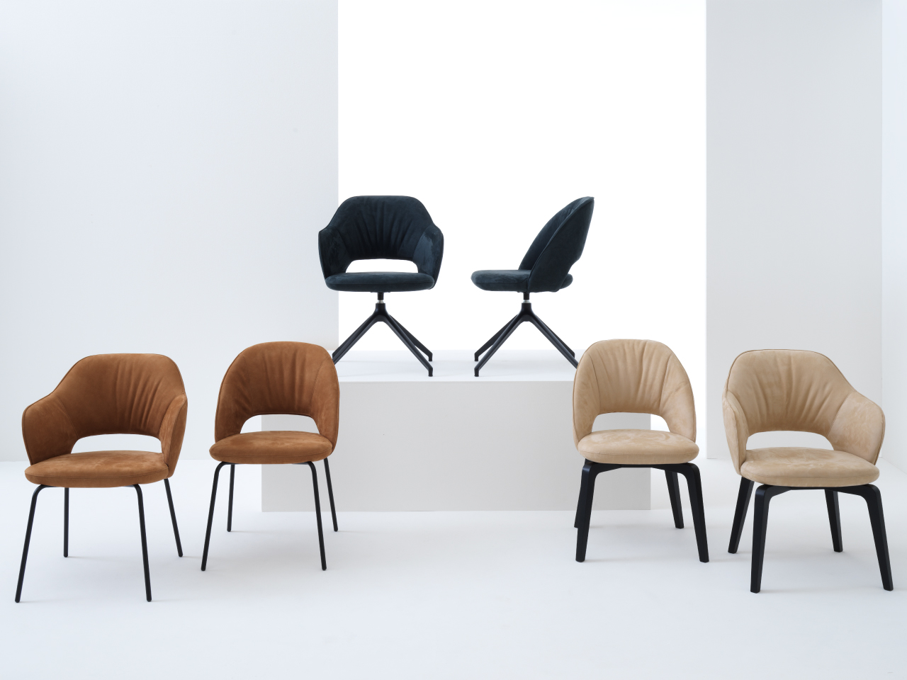Linee essenziali, dettagli ricercati e un’eleganza discreta definiscono l’identità di Noemi, una collezione pensata per ambienti domestici, contract e direzionali. Il tratto distintivo è lo schienale delicatamente pieghettato, che dona ritmo e leggerezza visiva all’intera struttura. Disponibile con o senza braccioli, Noemi unisce comfort e stile con naturale equilibrio. La collezione si declina in tre varianti funzionali: Noemi / Noemi Arm, con base in metallo verniciato e profilo snello e contemporaneo; Noemi Plus / Noemi Arm Plus, con struttura in frassino massello e meccanismo auto-ritorno integrato per una postura sempre composta; Noemi Round / Noemi Plus Round, con base girevole tonda, ideale per sale riunioni o lounge evolute. In ogni versione, Noemi conserva la sua personalità elegante, offrendo soluzioni versatili, curate in ogni dettaglio con quella precisione sartoriale che distingue la filosofia progettuale di Julia Italia.