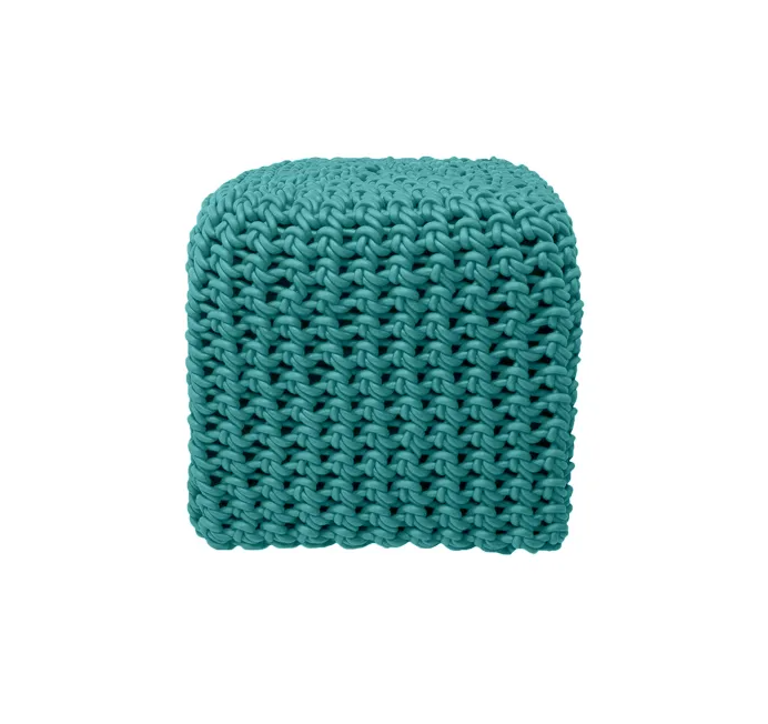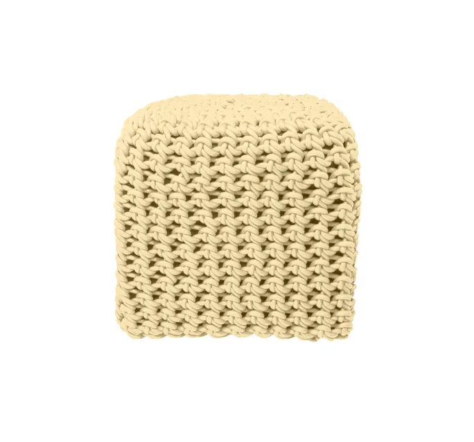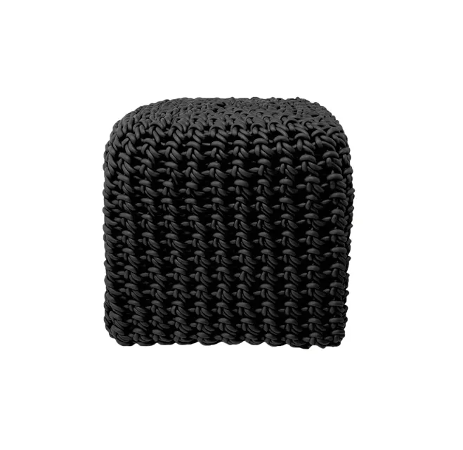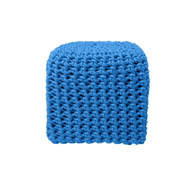 Questi pouf sono lavorati a maglia con filo di gomma intrecciata.