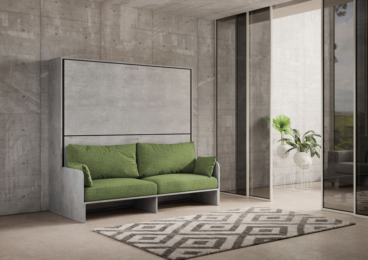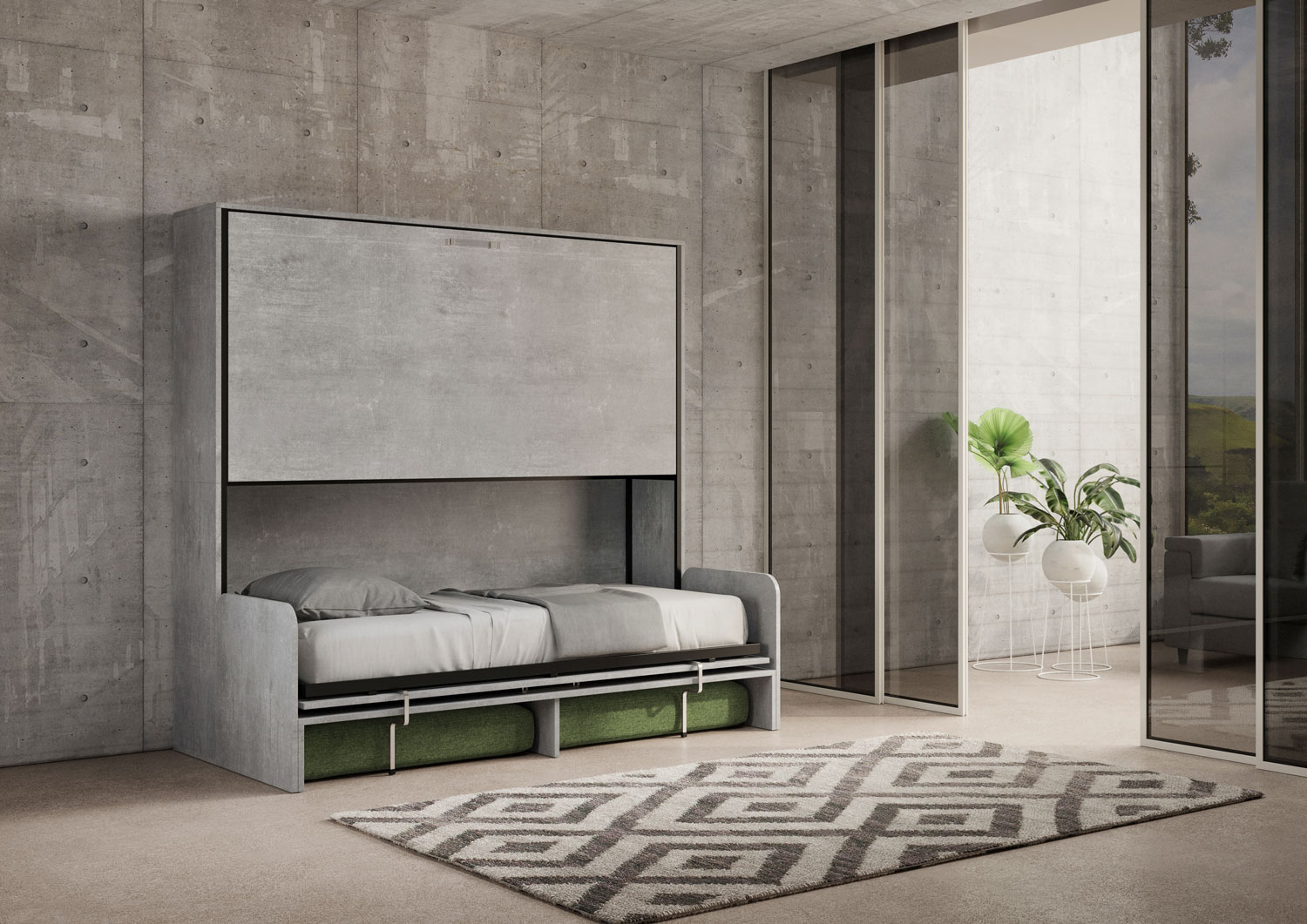 Letto doppio a scomparsa Kando con divano con materassi
