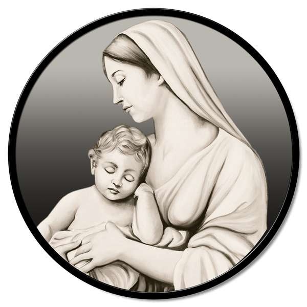 Pannello tondo in fibra di legno rivestito in tela di puro cotone stampata in alta definizione e con cornice in metallo laccata opaca.