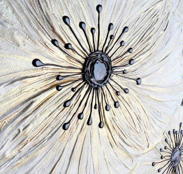 PANNELLI DESIGN cm 197x67 variante AVORIO Floreale materico su struttura doppia-elle con elemento centrale applicato. Decorazione a mano con acrilici, colori a cera e resine.