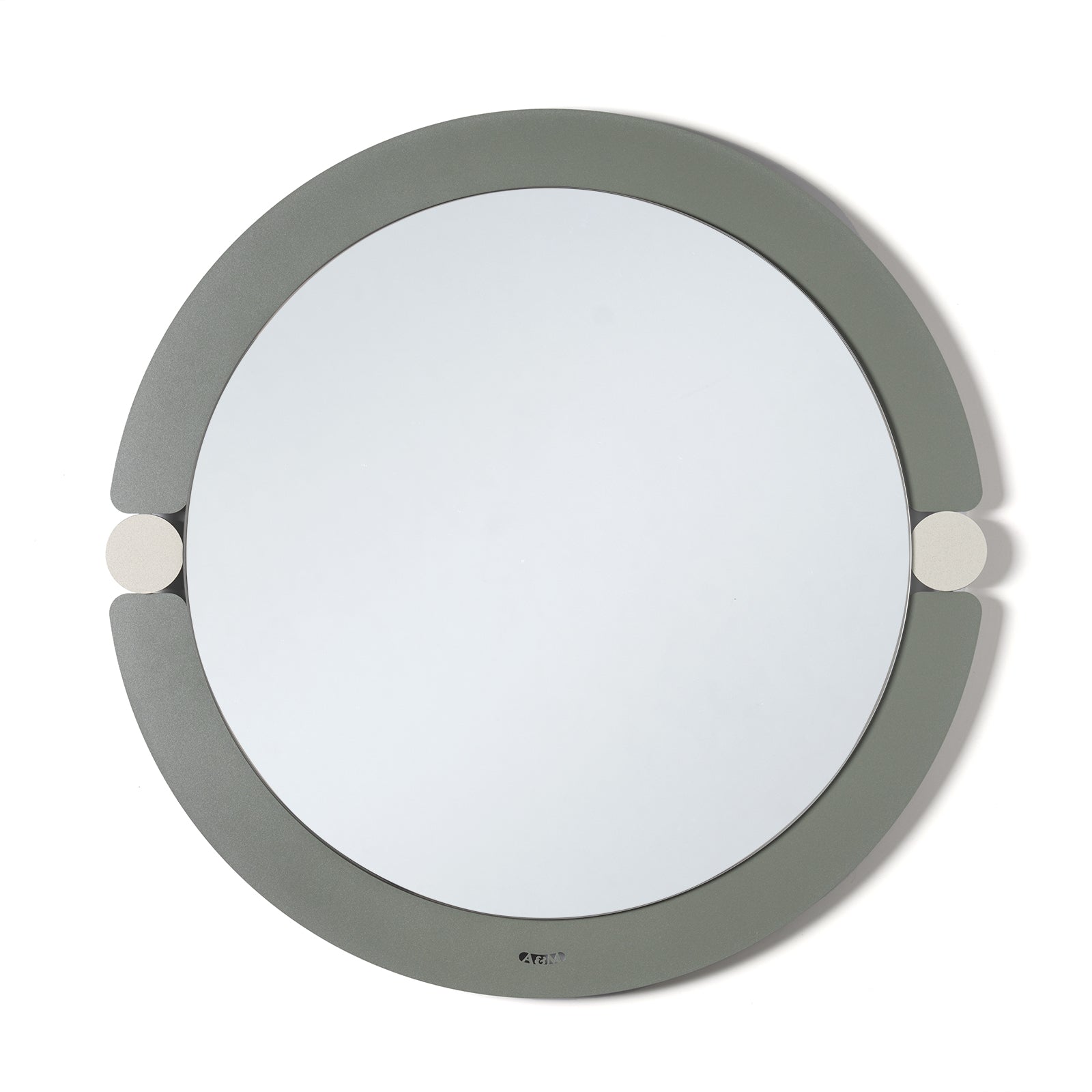 Designen finns även i en rund version och definieras av en oval järnram som omsluter den centrala spegeln, avbruten i sidled av två cirklar placerade mitt på sidorna. Dessa cirklar, i en annan färg än ramen, bryter elegant symmetrin och skapar en färgkontrast som ger rytm och personlighet åt kompositionen. En liten, noggrant genomtänkt detalj som gör Alchimia till ett dekorativt element som kan sticka ut med sofistikering.
