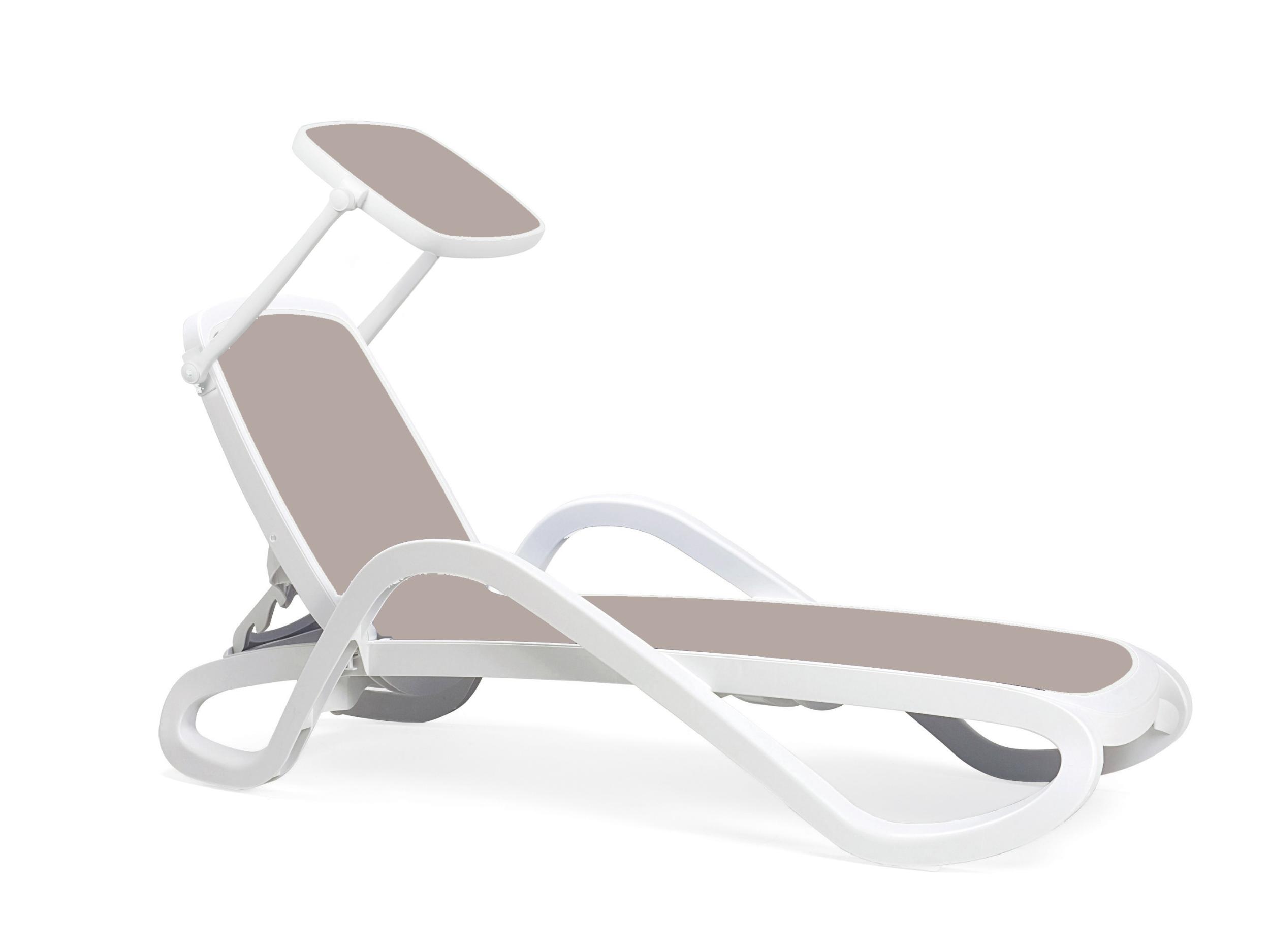 Solsäng med armstöd, med en rörformad hartsram och en insida av andningsbart syntettyg. Ryggstödet är justerbart i fyra lägen och solsängen finns i olika färgkombinationer av ram och tyg. Den är också stapelbar för enkel förvaring.