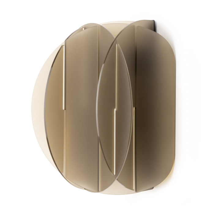 Ljuset passerar genom en komposition av halvcirklar överlagrade på olika plan, vilket skapar ett fascinerande tredimensionellt spel av ljus och skugga, som kan förvandla omgivningen med en oväntad touch.