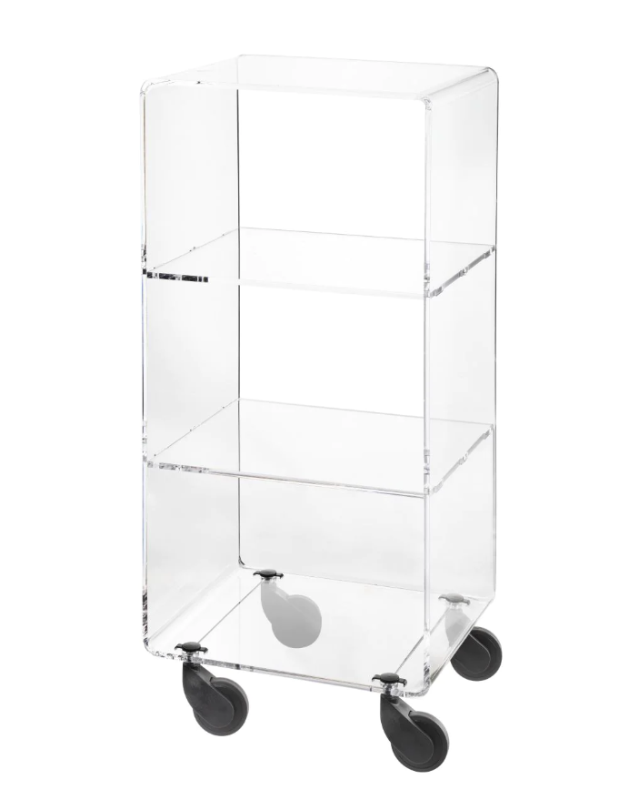 Multifunktionsvagn på hjul, i transparent metakrylat.