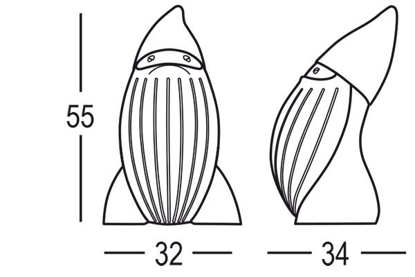 I den självlysande versionen fungerar den som en "skyddsdvärg" tack vare ett självlysande harts som absorberar ljus för att