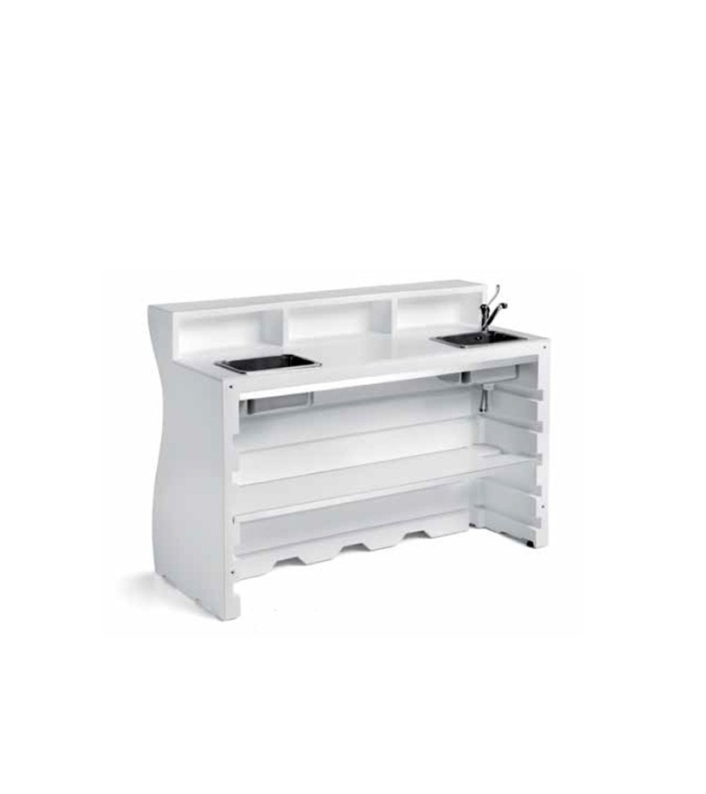 Den modulära bardisken representerar det perfekta valet för dig som vill ha en professionell inredningsdel med en sober och elegant stil, robust , mångsidig och lätt att rengöra .