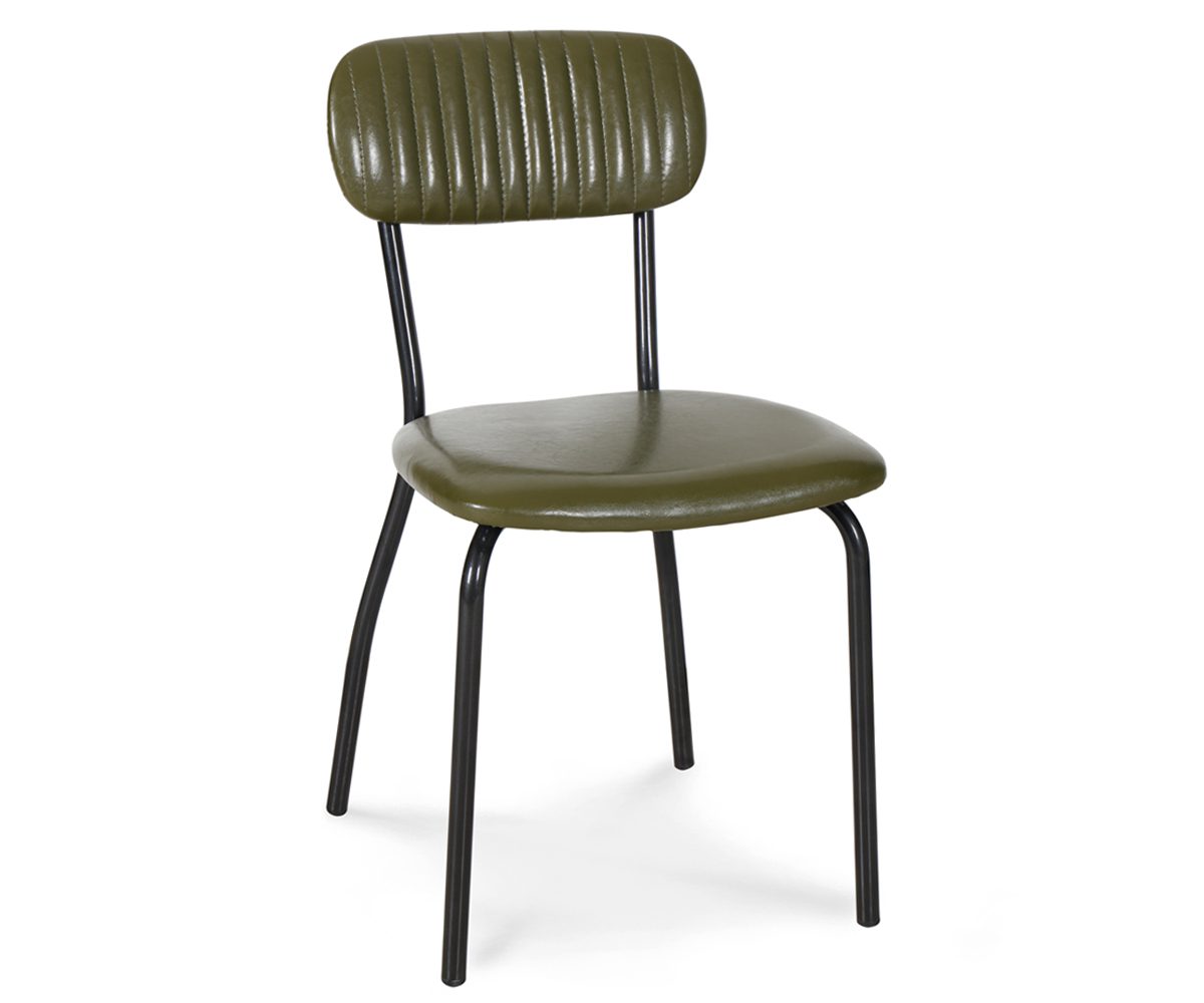 Quiltat ryggstöd och sits i PU-läder i grönt / svart / mörkbrunt.