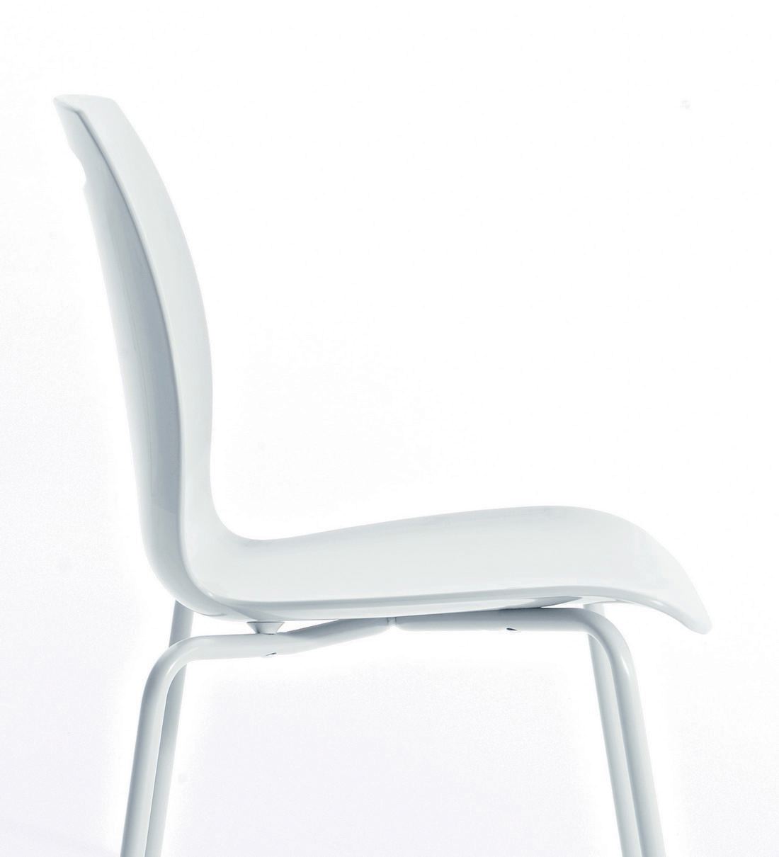 Stapelbar stol med stålram och sits i kompositteknopolymer.
