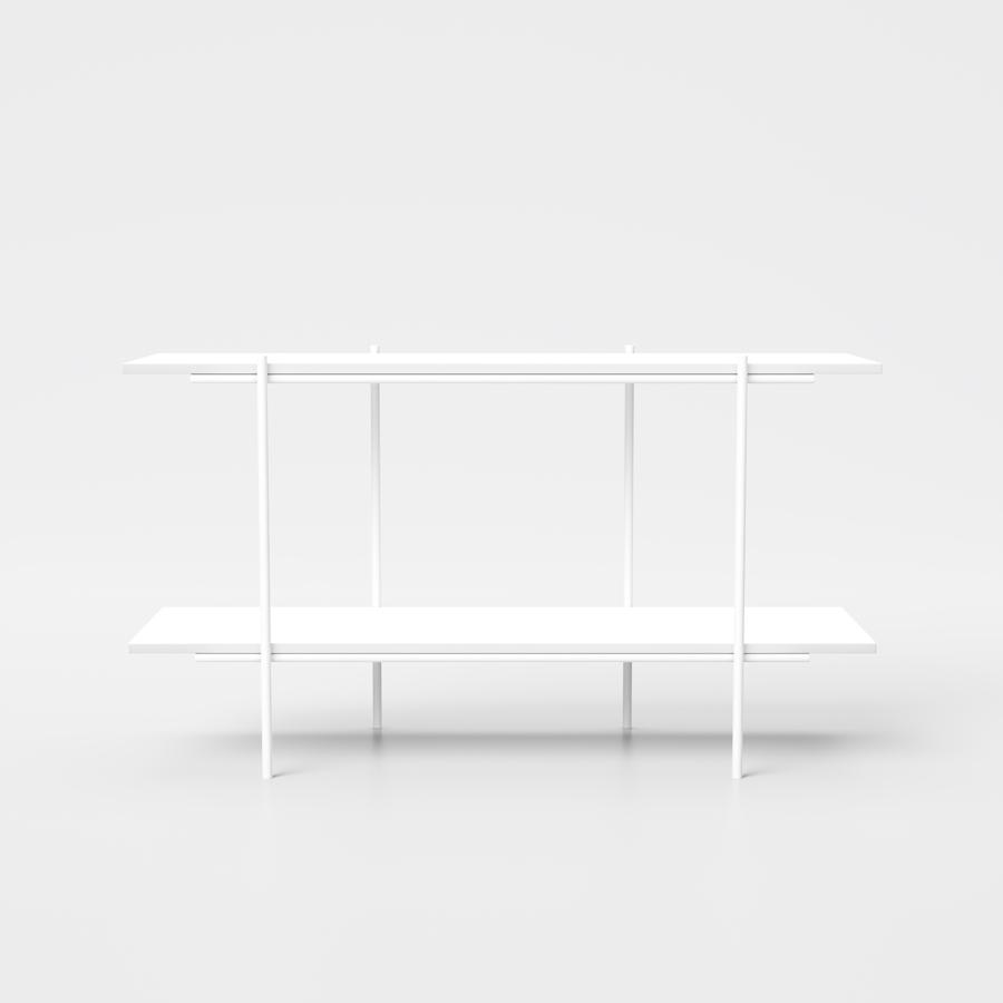 Biplano soffbord med en lätt och minimalistisk design, med en stödstruktur i massivt runt stål.