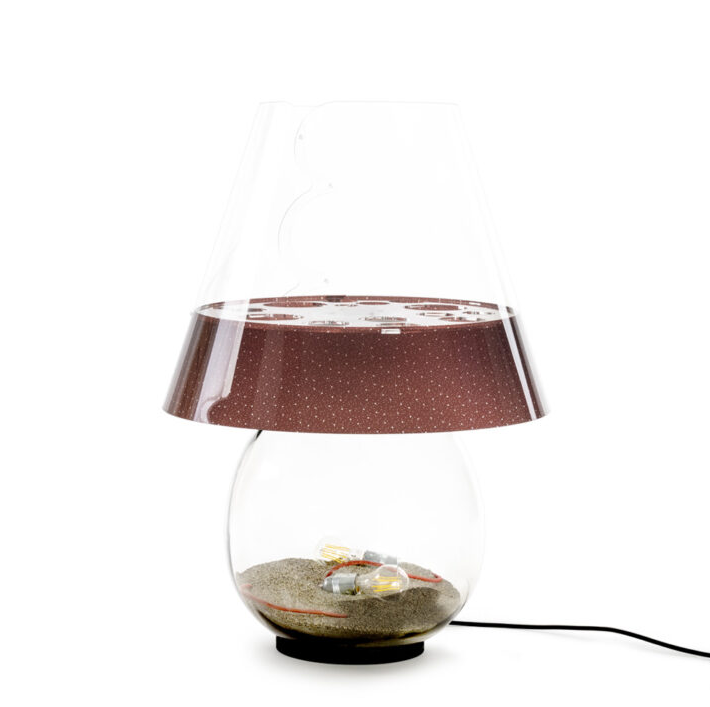 Ljuset, placerat inuti lampans kropp, skapar en suggestiv effekt som påminner om solen som sakta sjunker ner i vattnet.