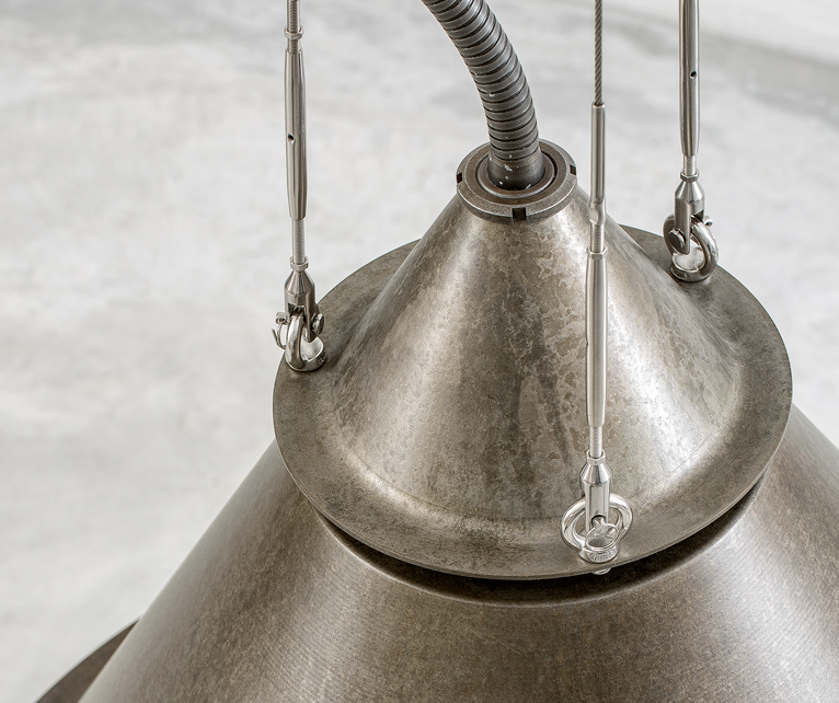 Den antika stålfinishen ger karaktär och en stark visuell effekt.