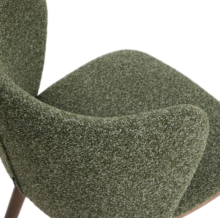 Ciselia pall i tjock mörkgrön chenille och ben i massivt askträ med valnötsfinish.