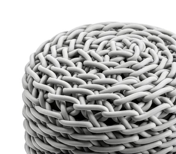 Stickade puffar av vävd gummitråd, som kombinerar hantverk och hållbarhet i en förfinad och bekväm design.
