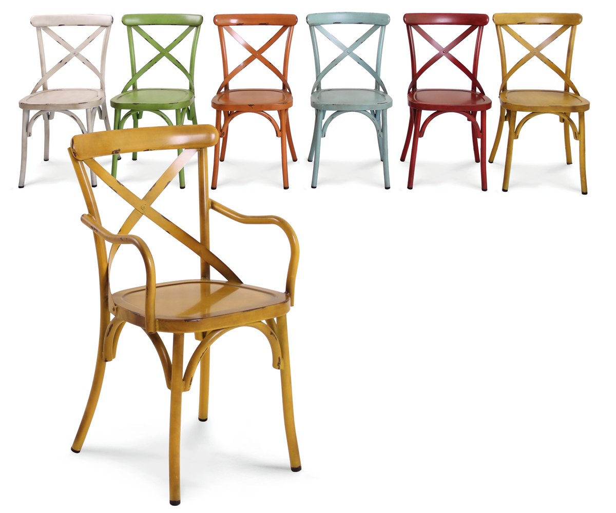 Fåtölj med målad metallstomme med en sliten vintage-effekt.