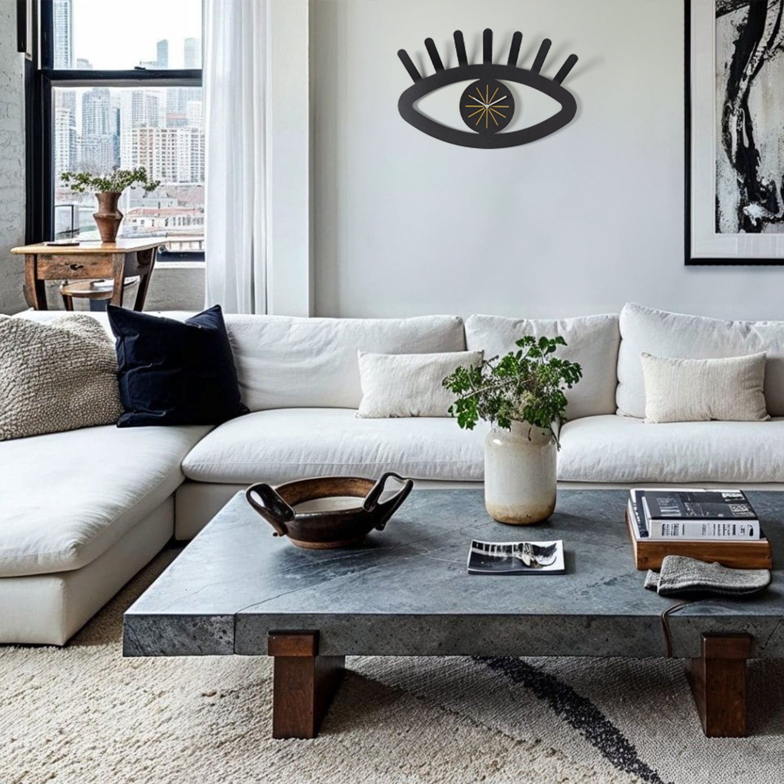 Den utmärker sig genom sin avgjort okonventionella form och starka visuella effekt. Inspirerad av ögats symboliska bildspråk förvandlar denna klocka ett vardagsföremål till ett originellt, modernt dekorativt föremål.