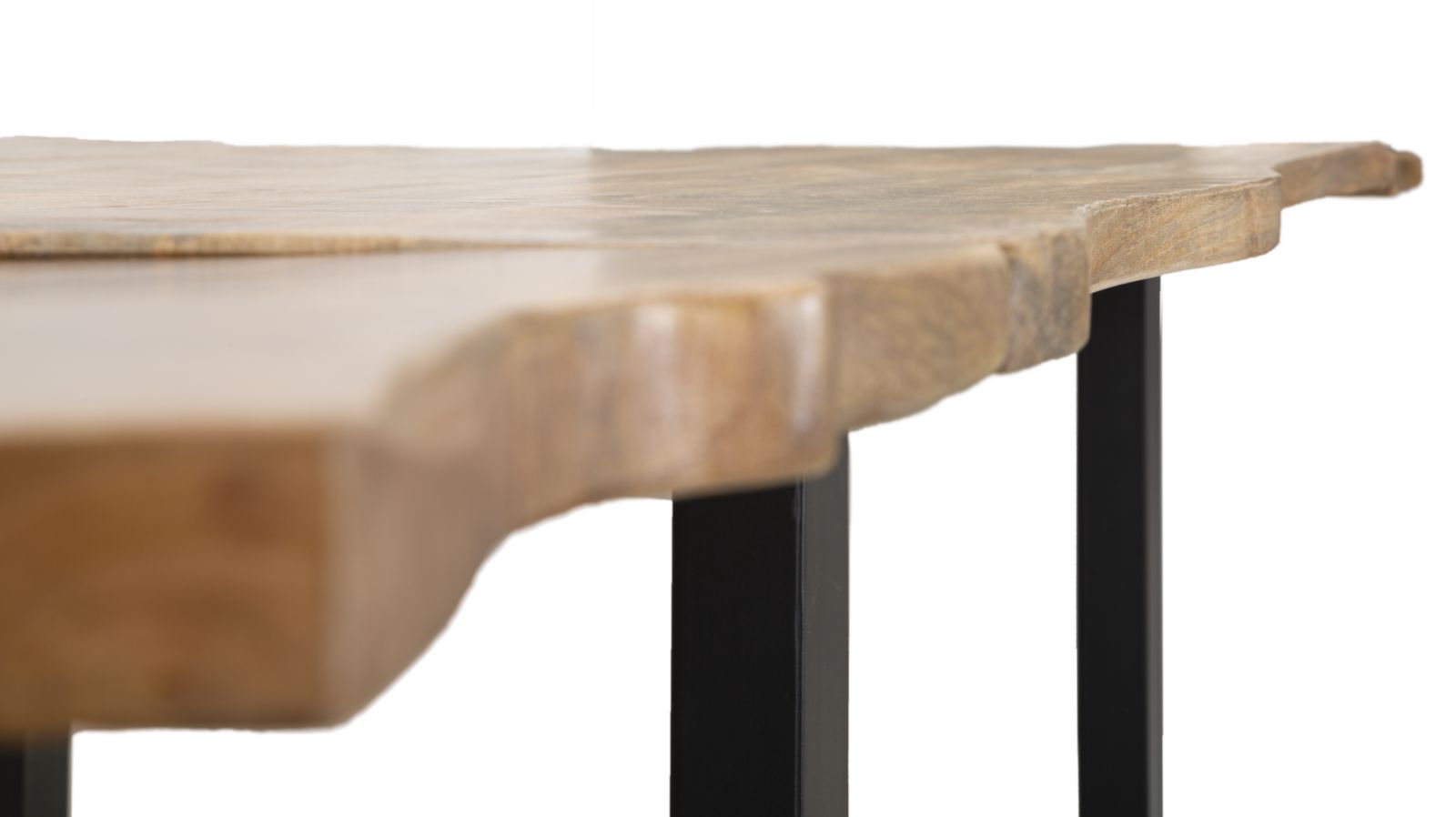 Utdragbart matbord i trä med metallben. Den industriella stilen i kombination med den enkla designen ger en touch av elegans och sofistikering.