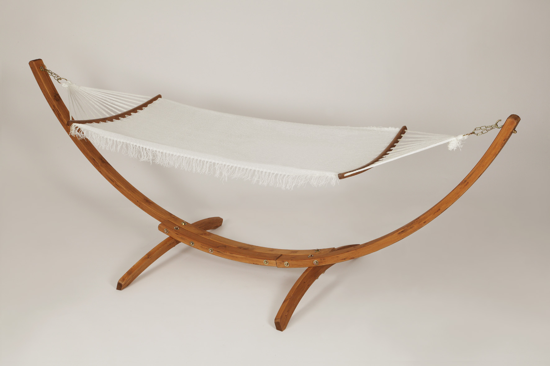 • Komplett med hängmatta artikel A3003, monterad helt för hand och bestående av små akaciaträn träade i polyesterflätor, rekommenderas för dig som vill ha en bekväm, avkopplande och stressfri vila, garanterar också en massage med terapeutisk effekt på ryggraden.